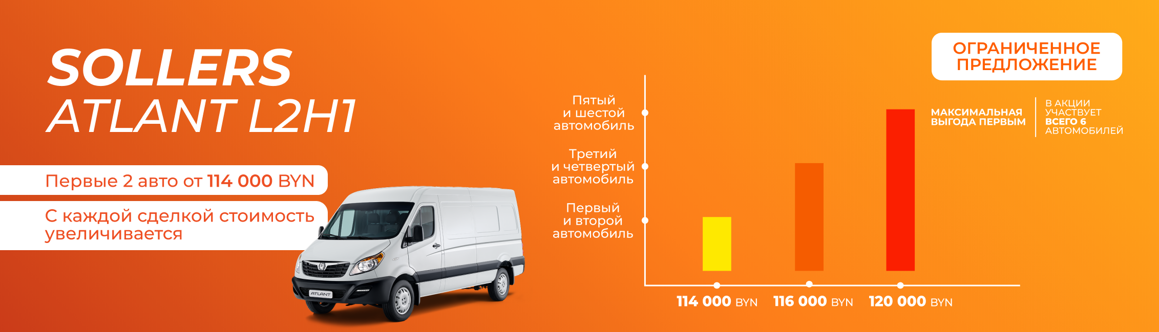 До конца апреля Sollers Atlant доступен по специальной цене 125 000 BYN вместо 130 000 BYN при сдаче своего автомобиля в Trade-In и на уникальных условиях финансирования: без первого взноса; под 0,00001%; сроком до 10 лет.